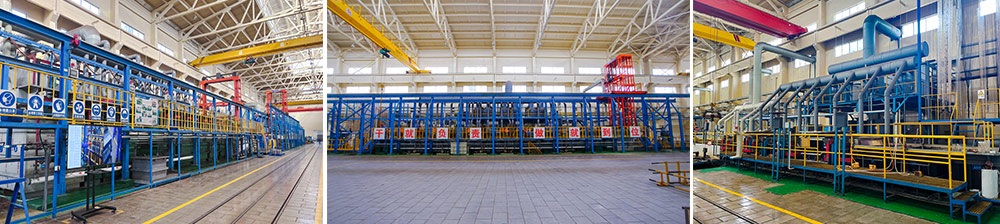 表面技術中心占地5.2公頃,規劃面積25000m2,目前已經建成車間總面積10000m2。電鍍產線以國內領先標準設計,設備選用先進的電鍍設備。其中電鍍產線一期工程完成了鍍鉻A、B、C三條生產線和廢氣、污水處理等環保配套設施的建設和驗收。鍍件的最大直徑可達到590mm,最大長度可達7500mm。它可實現電鍍生產自動化,污染物處理自動化,排放監控自動化功能。是業內規模較大、技術最先進的表面電鍍生產線。